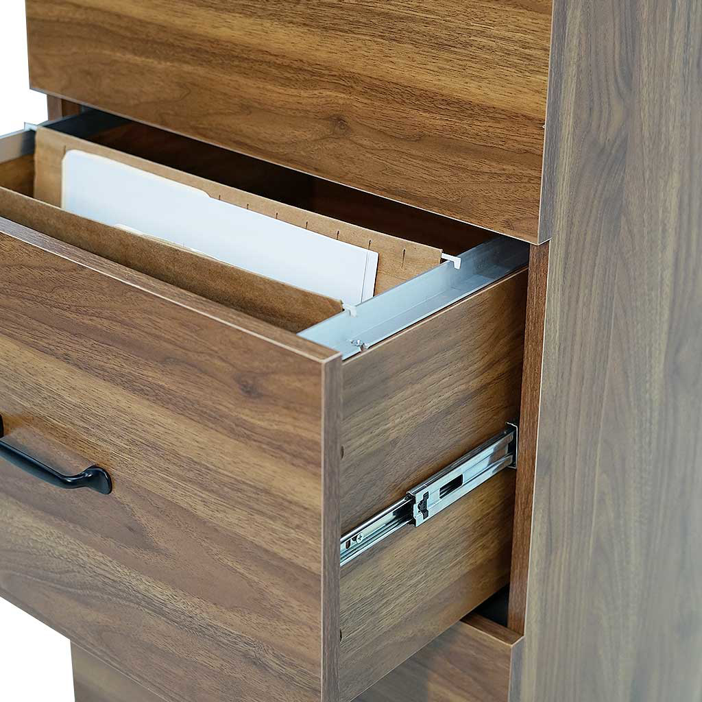 Cada gaveta está fabricada para alojar carpetas tamaño legal, permitiendo un almacenamiento eficiente de documentos y archivos importantes.