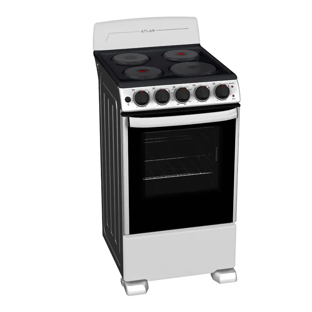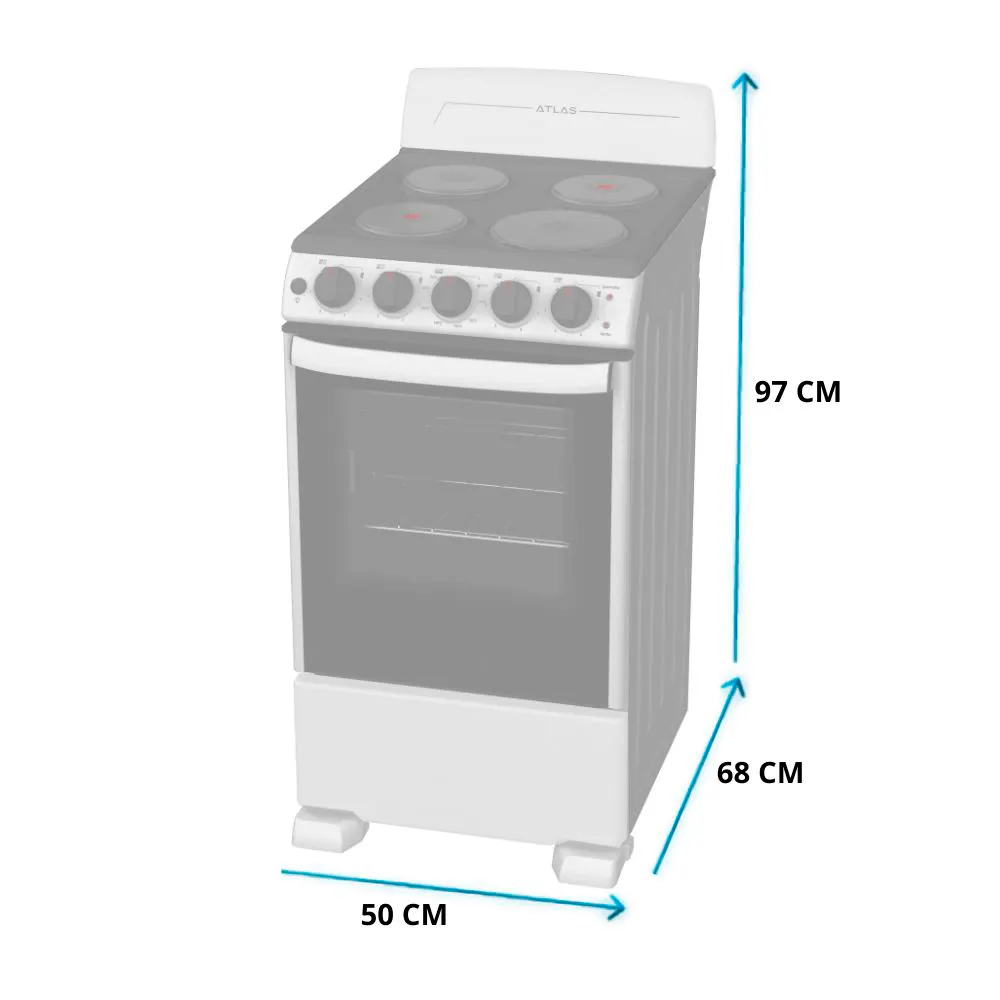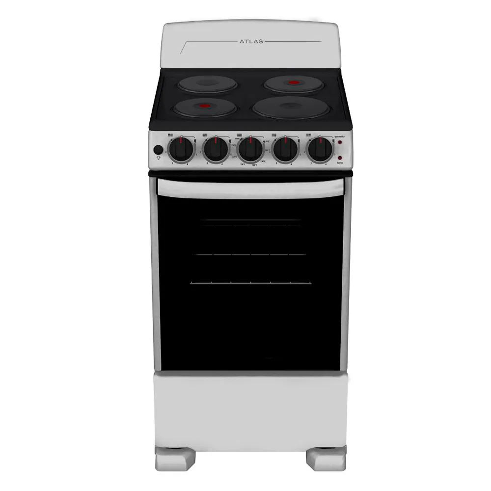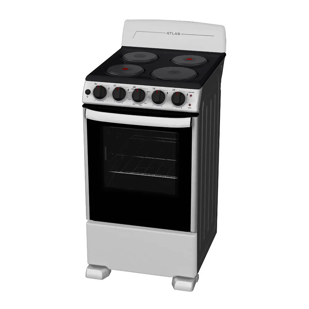 La Atlas EAE5020BSS0 es una cocina eléctrica de 4 quemadores diseñada para preparar tus recetas con calor uniforme y control preciso. Su horno eléctrico permite hornear, asar y gratinar con resultados consistentes, mientras la puerta panorámica y la luz interior facilitan vigilar la cocción.