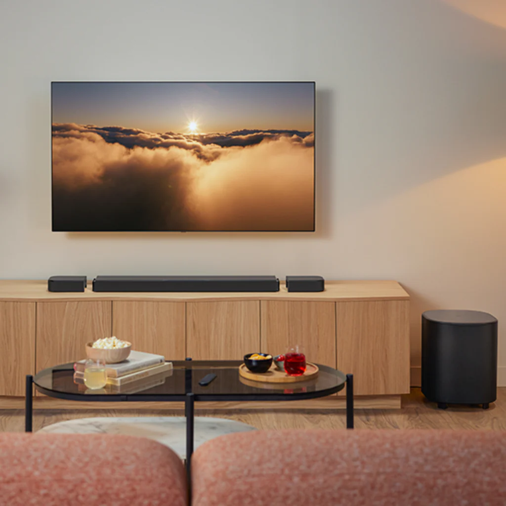 Además, integra tecnologías como MultiBeam 3.0 y PureVoice 2.0, que expanden el sonido en la sala y mejoran la claridad de los diálogos, haciendo que todo se escuche más definido sin subir el volumen.