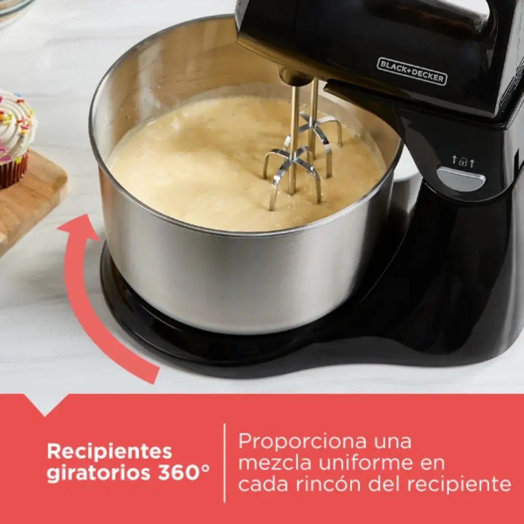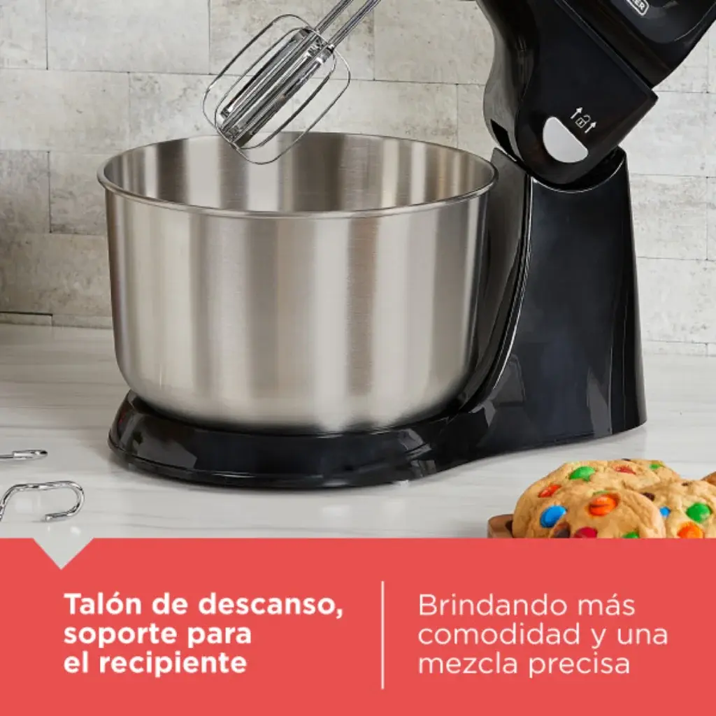 Diseño práctico y estable. Su base de pedestal mantiene la batidora estable durante el uso, permitiendo mezclar ingredientes de forma uniforme.
