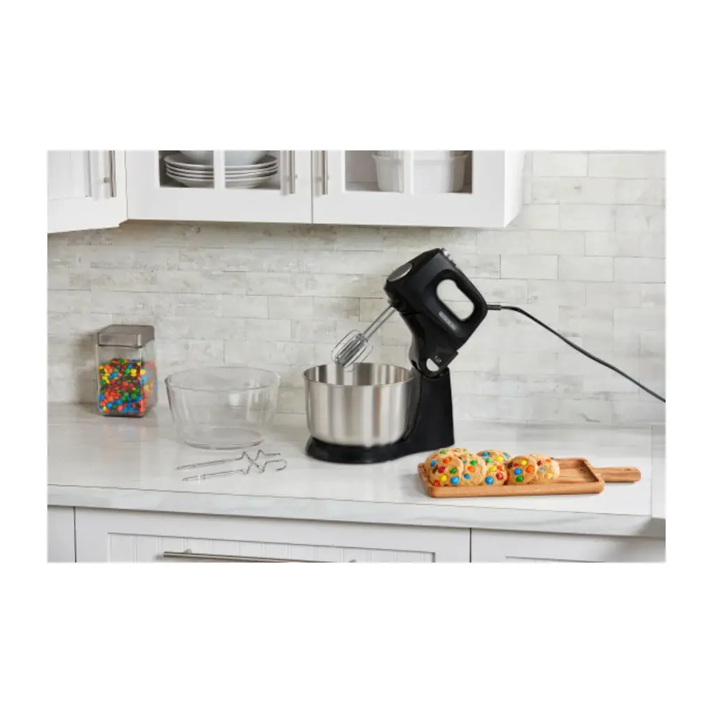 La batidora Black&Decker MX9125-1BDLA es un electrodoméstico versátil diseñado para facilitar la preparación de recetas en la cocina. Su sistema 2 en 1 permite utilizarla como batidora de pedestal o como batidora manual, brindando mayor flexibilidad para diferentes tipos de preparaciones.