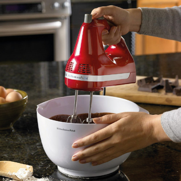La KitchenAid KHM512ER es una batidora de mano diseñada para quienes buscan potencia, control y comodidad en un formato compacto. Su motor eficiente ofrece un desempeño constante en las 5 velocidades disponibles, permitiendo mezclar, batir y airear con gran facilidad desde recetas ligeras hasta preparaciones más densas.