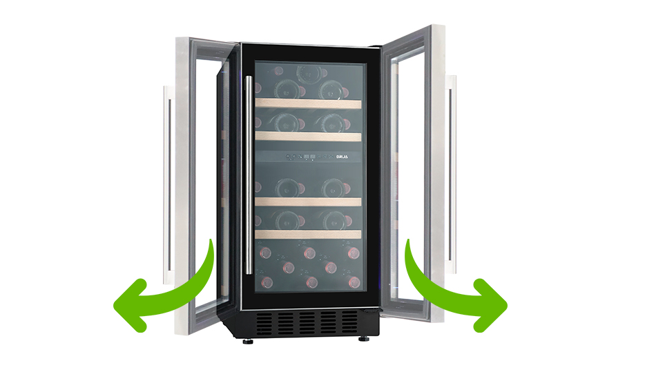 Cuenta con dos cámaras independientes que permiten manejar distintos rangos de temperatura, asegurando condiciones óptimas para diferentes tipos de vino. El sistema de enfriamiento por compresor brinda estabilidad térmica y funcionamiento silencioso, mientras el refrigerante ecológico R600A contribuye a un ahorro energético significativo. La iluminación LED azul y los estantes de madera realzan la presentación de la colección, cuidando cada botella como merece.