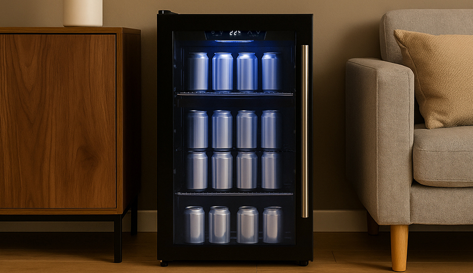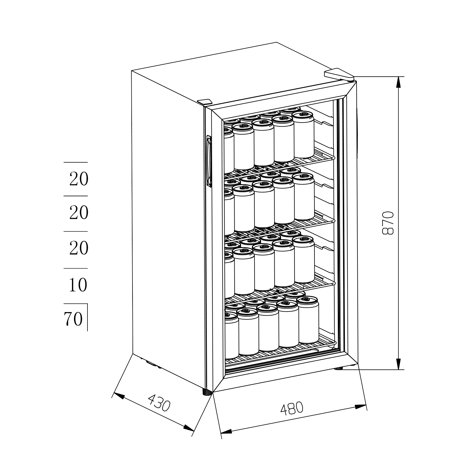Cuenta con sistema de enfriamiento por compresor, lo que garantiza una temperatura estable y un rendimiento confiable incluso en uso continuo. Su panel de control digital permite ajustar con precisión el rango de temperatura entre 0 y 10 °C, asegurando condiciones óptimas para refrescos, cervezas y otras bebidas. La iluminación interna y los tres estantes facilitan la organización y visualización del contenido, mientras que el refrigerante ecológico R600A contribuye a una operación más eficiente y responsable con el consumo energético.