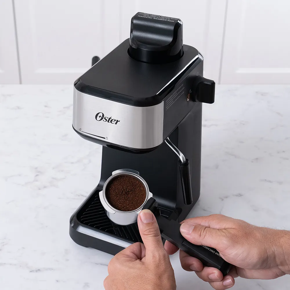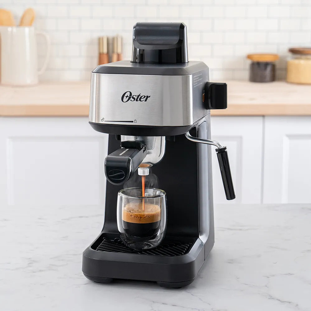 La Oster BVSTEM3300 es una cafetera de espresso por vapor práctica y compacta, ideal para iniciar en el mundo del espresso en casa. Permite preparar hasta 4 tazas por ciclo en su jarra de vidrio con marcas de medición y cuenta con tubo vaporizador para espumar leche y lograr capuchinos o lattes cremosos.