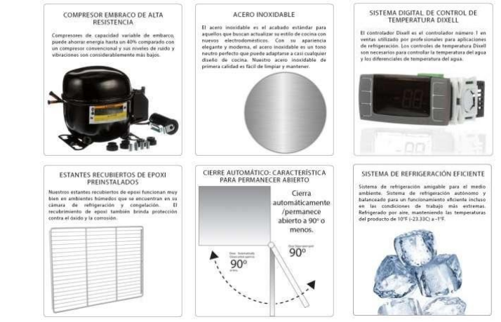 Fabricada con materiales de alta resistencia y sistema de refrigeración confiable, esta cámara es perfecta para supermercados, tiendas de conveniencia, panaderías y restaurantes. El interior está diseñado para una distribución óptima de los productos, con estantes ajustables que facilitan la organización.