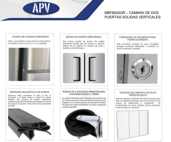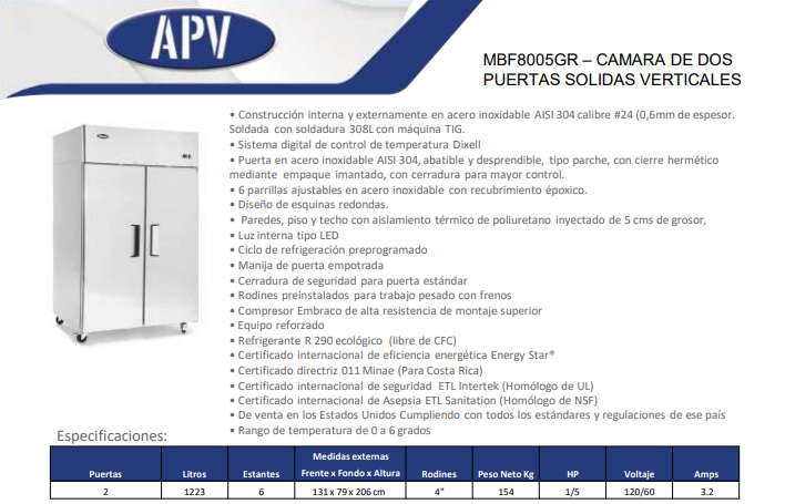 - Paredes, piso y techo con aislamiento térmico de poliuretano inyectado de 5 cms de grosor,