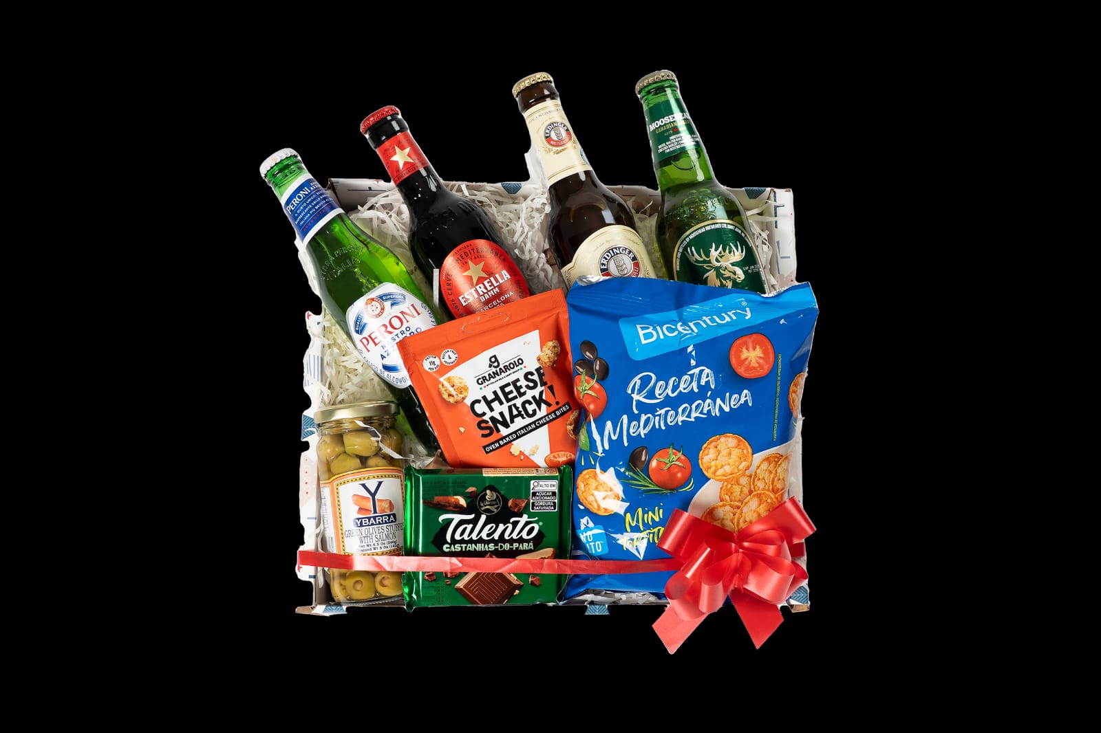 La Canasta Cervezas Mixta reúne una selección equilibrada de cervezas importadas y acompañamientos gourmet diseñados para sorprender. Incluye marcas reconocidas como Peroni, Estrella Damm, Erdinger y Moosehead, acompañadas de snacks salados, chocolate premium y aceitunas rellenas para complementar perfectamente cualquier ocasión.