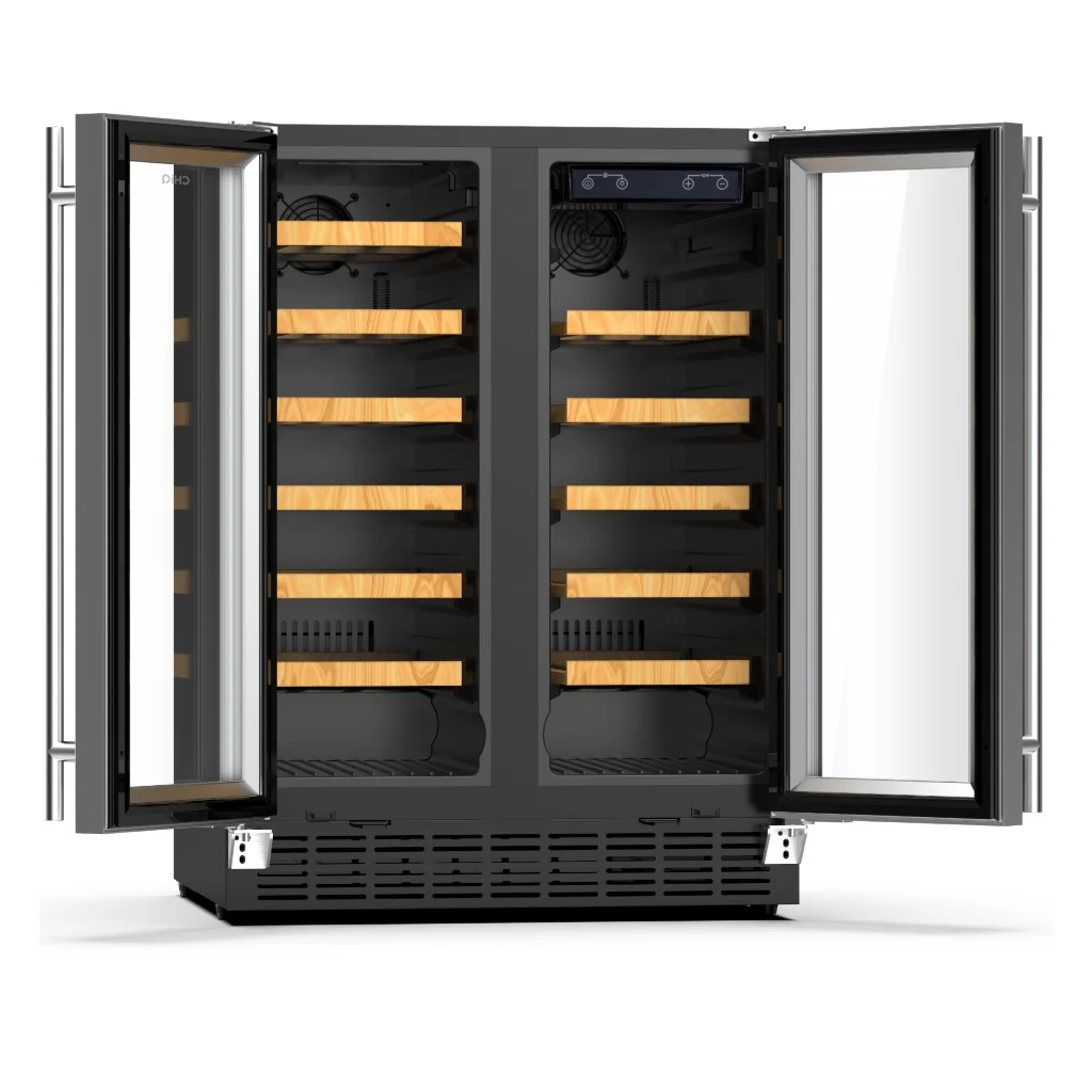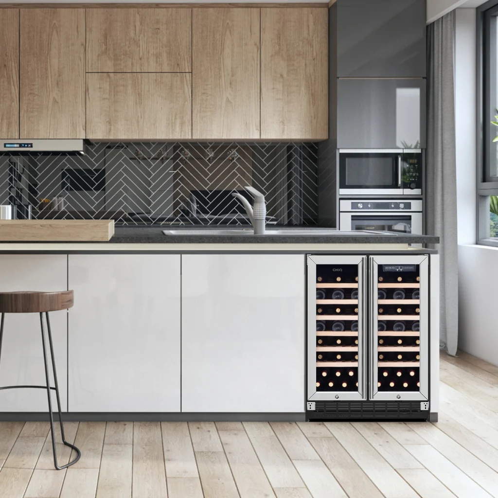 La CHiQ CQRW40Y1AMD1B7V es una vinera de 40 botellas con dos zonas de enfriamiento independientes, ideal para guardar a la vez tintos y blancos en su temperatura óptima. El sistema de baja vibración y la temperatura estable ayudan a preservar aromas y estructura del vino.