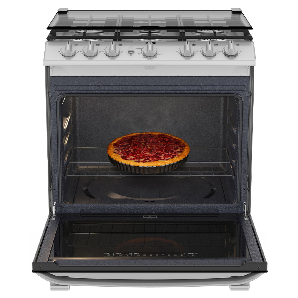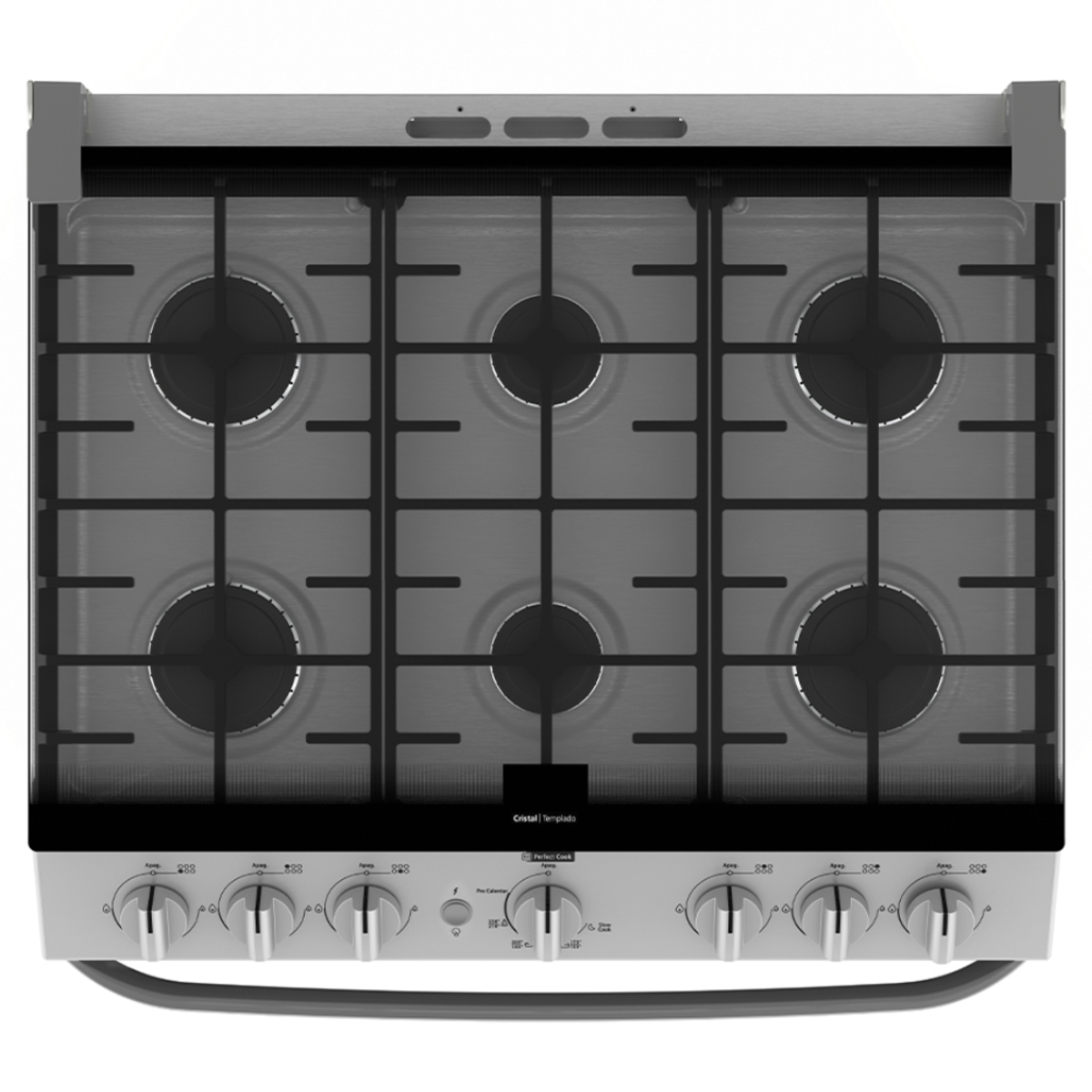 La Mabe EMH7602JS0 es una cocina a gas de 30″ (76 cm) pensada para el uso diario. Sus 6 quemadores cubren desde un simmer preciso hasta hervor rápido. El horno a gas con ventana panorámica y luz interior permite seguir tus recetas sin abrir la puerta, logrando cocciones parejas.