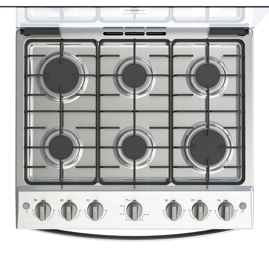 La Whirlpool LWFR3000D es una cocina a gas de 30″ pensada para el uso diario con gran capacidad y acabados durables. Incorpora 6 quemadores de aluminio para cocinar varias preparaciones a la vez, cubierta de acero inoxidable fácil de limpiar y capelo de cristal templado que protege la superficie cuando no se usa.