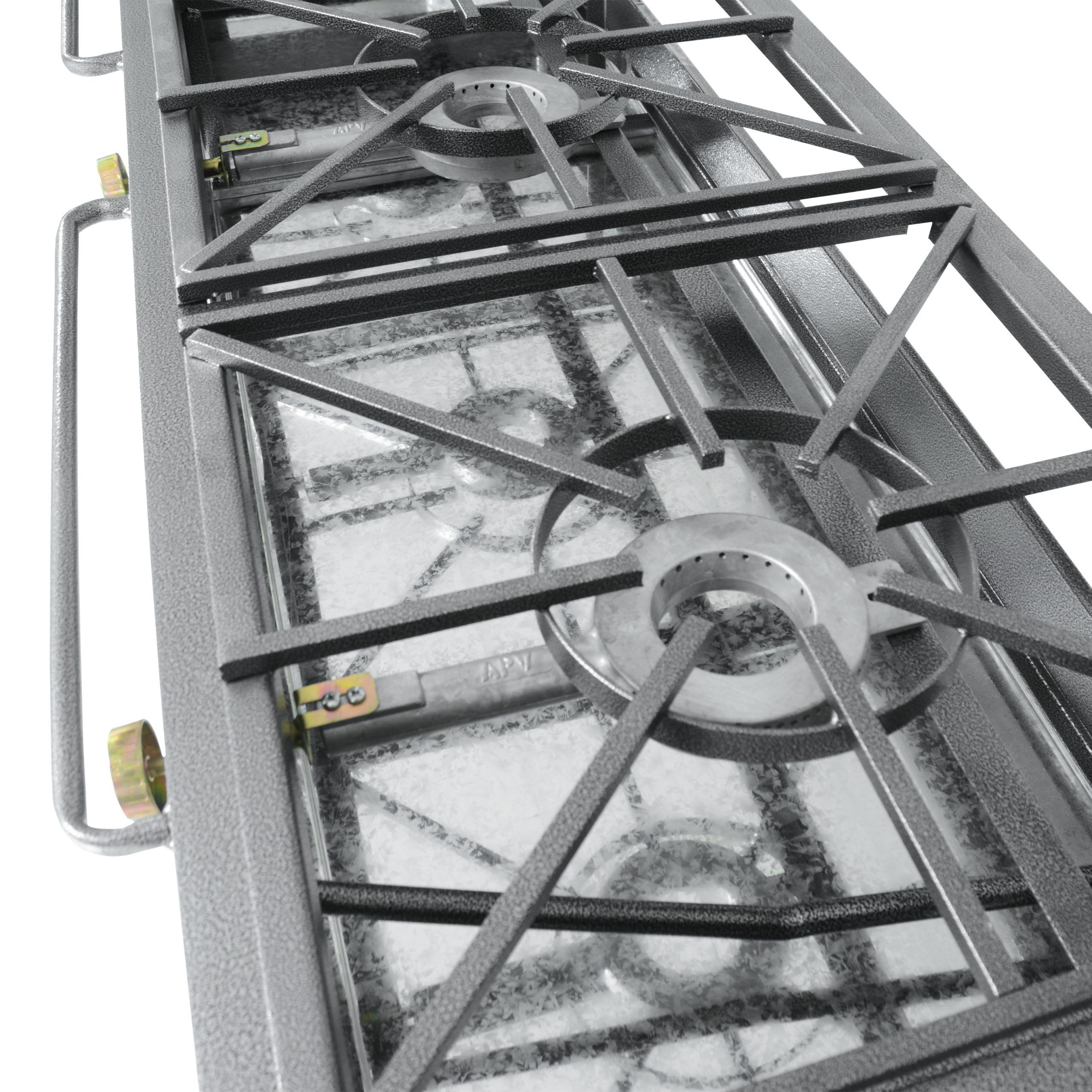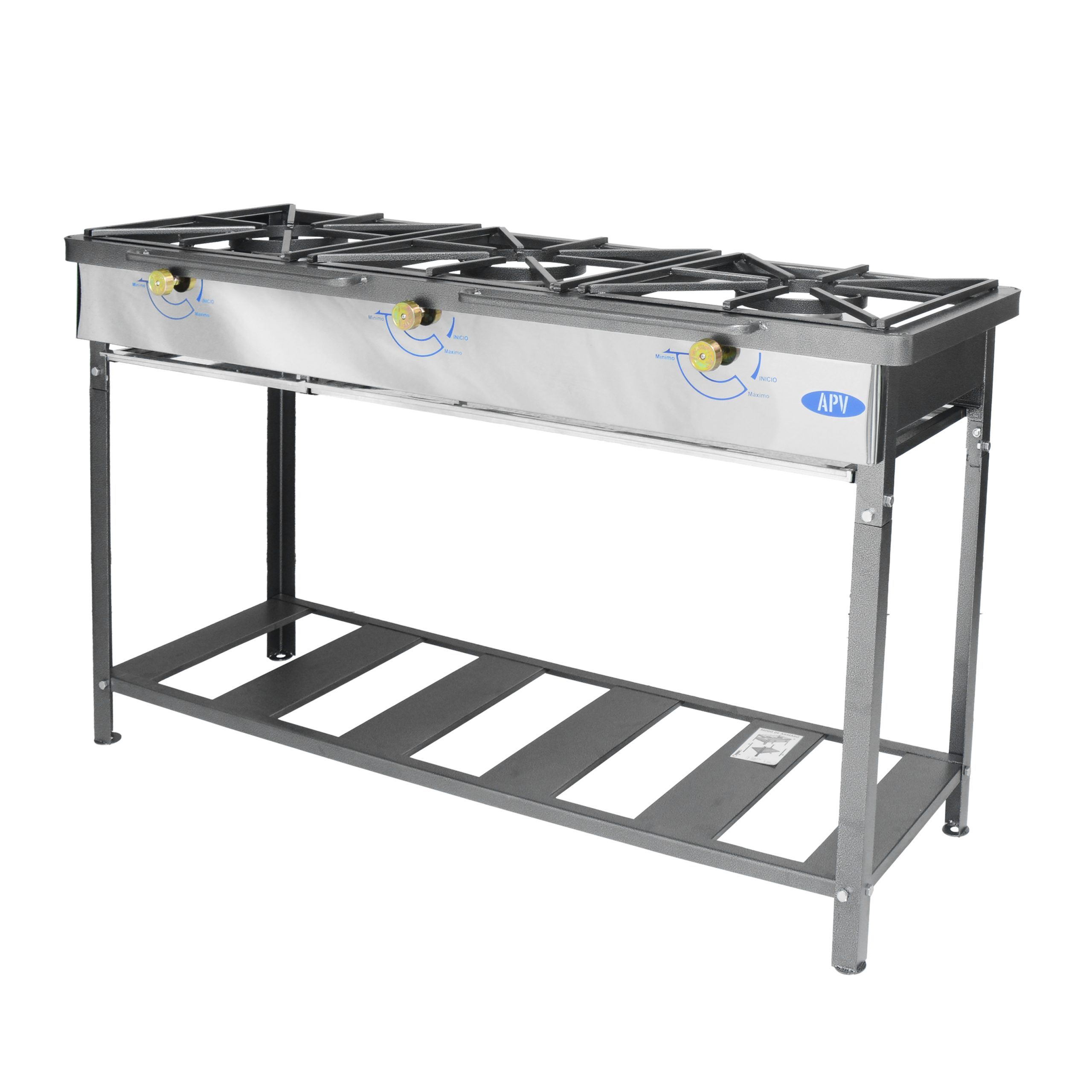 • Cocina lineal a gas de 3 quemadores extragrandes.