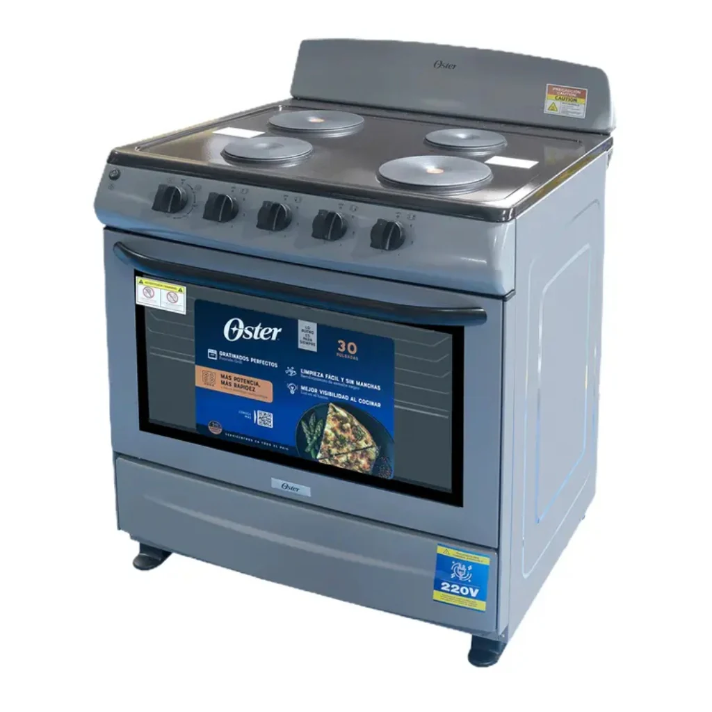 La cocina eléctrica de 30 pulgadas Oster modelo OS-ELBC30220S está diseñada para ofrecer potencia, capacidad y durabilidad en el uso diario. Es una solución completa para quienes buscan una cocina funcional, resistente y fácil de mantener.