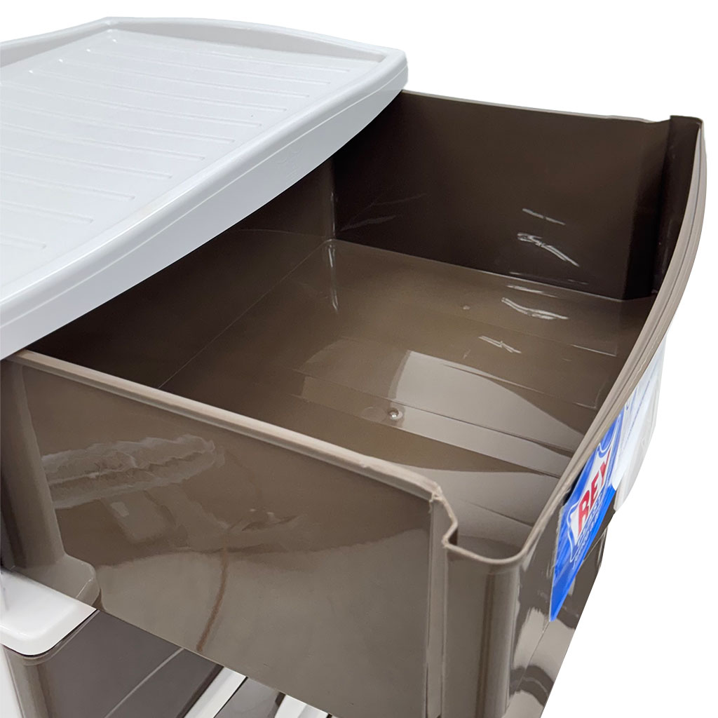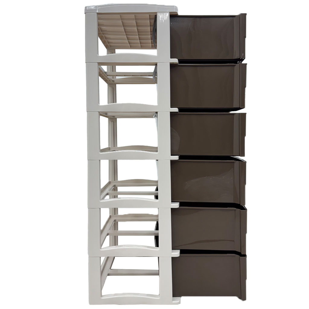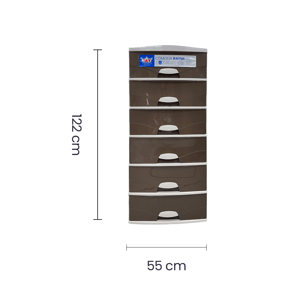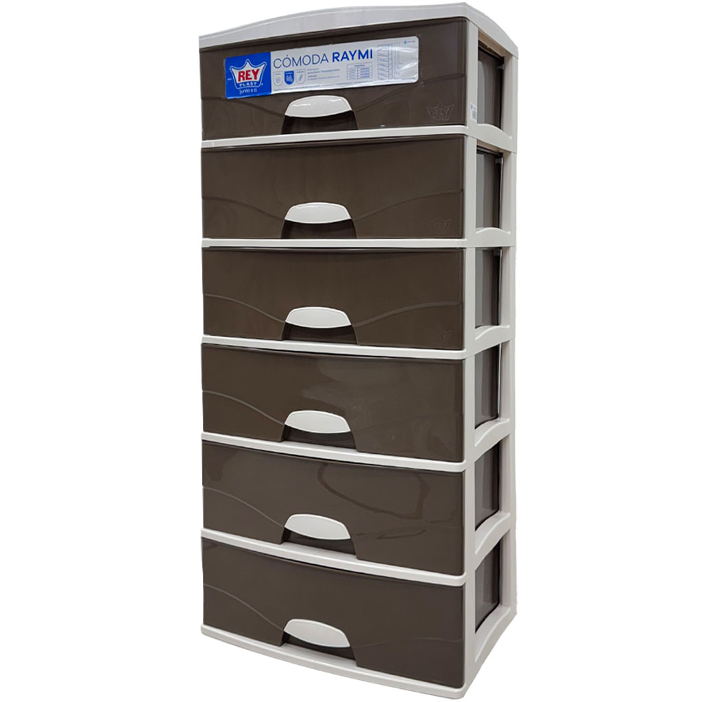 Confeccionada en plástico resistente, combina acabados en color chocolate y beige que se adaptan fácilmente a distintos ambientes. Sus 6 gavetas amplias con agarraderas seguras permiten un almacenamiento cómodo, evitando que se salgan accidentalmente.