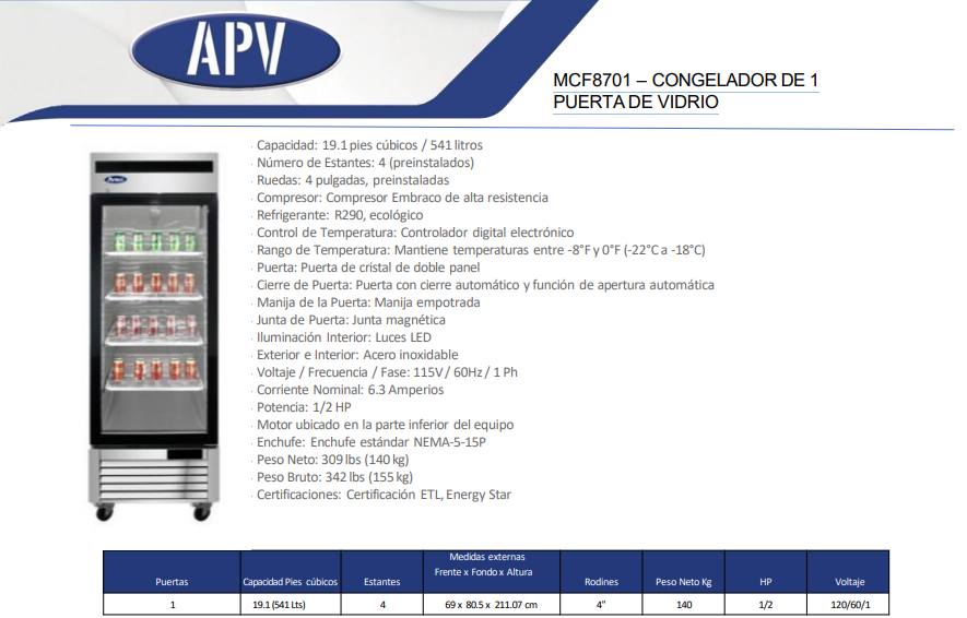 Rango de Temperatura: Mantiene temperaturas entre -8°F y 0°F (-22°C a -18°C)