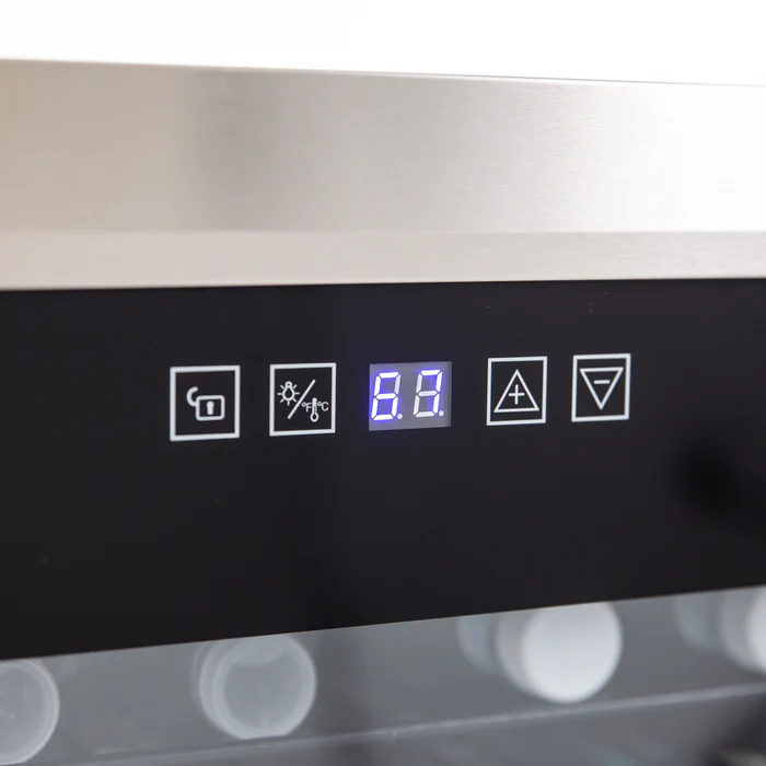 El control digital permite elegir la temperatura entre 37° y 65°F con alta precisión, garantizando un frío uniforme. Además, incorpora cerradura de seguridad inferior para uso comercial o compartido.