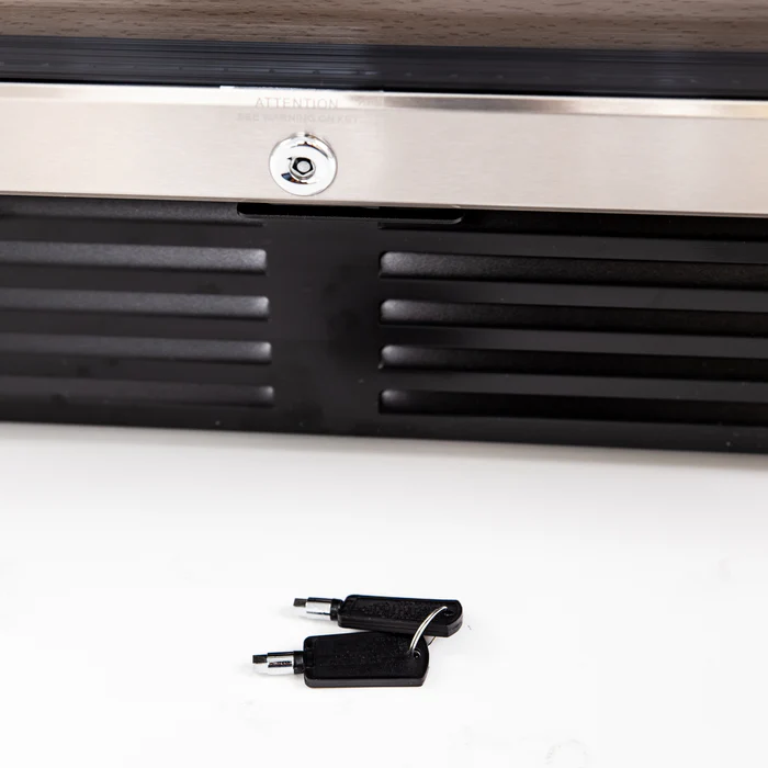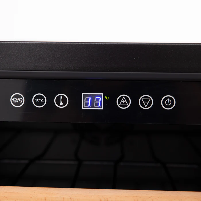 Cuenta con control electrónico digital, iluminación LED de larga duración, sistema de auto-descongelación y estantes especialmente diseñados para botellas tipo Burgundy. Su rango de temperatura de 40° a 55° F mantiene tintos y blancos en condiciones ideales para envejecimiento o consumo inmediato.