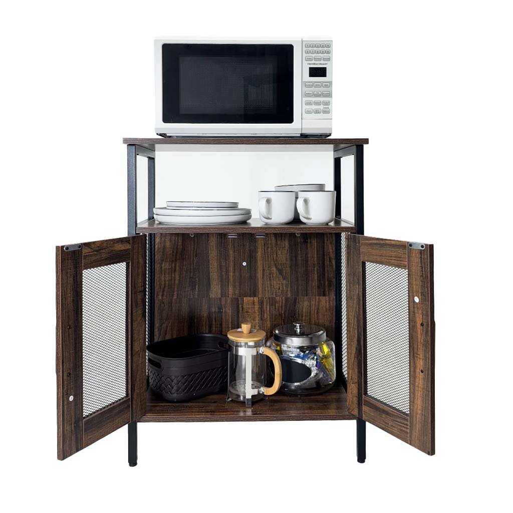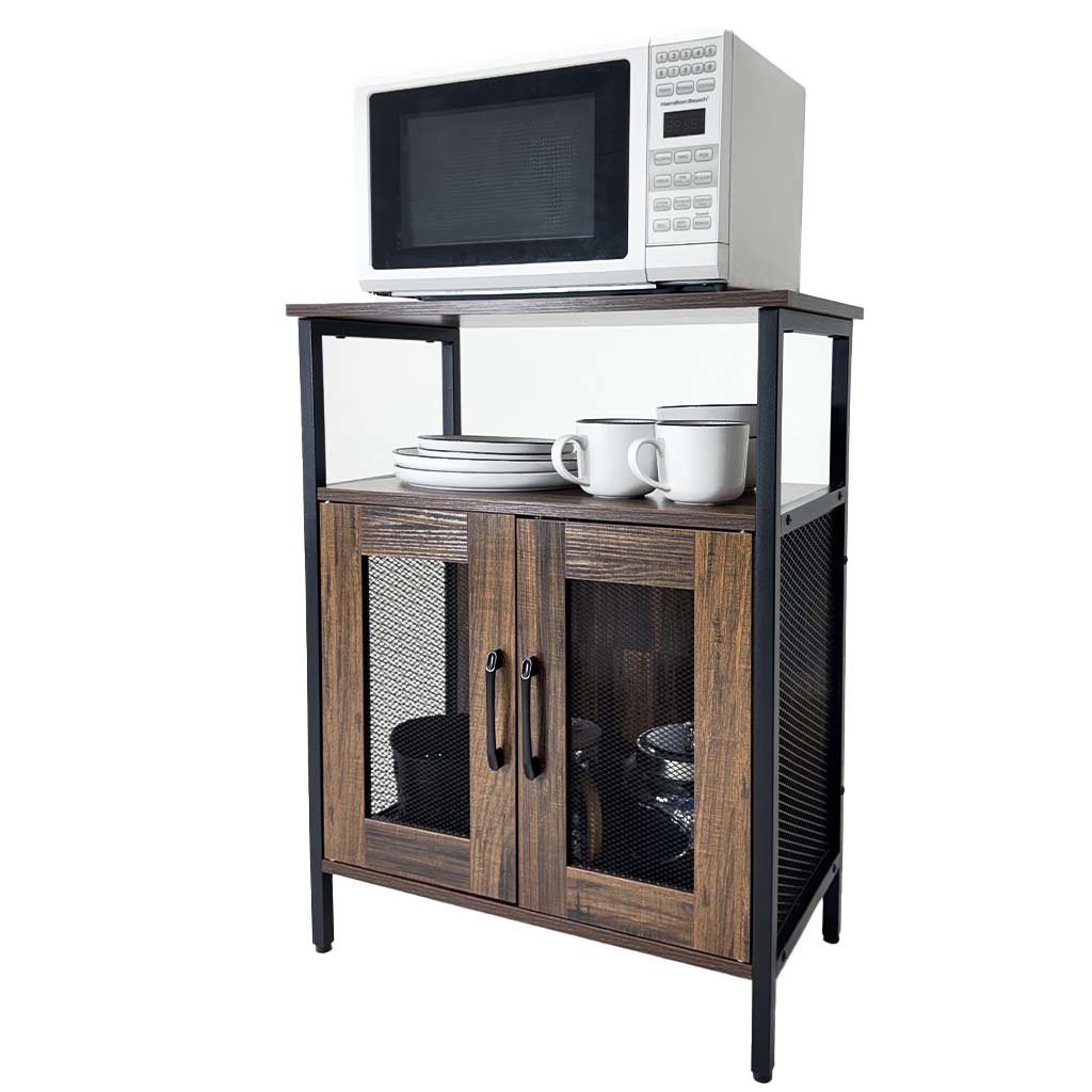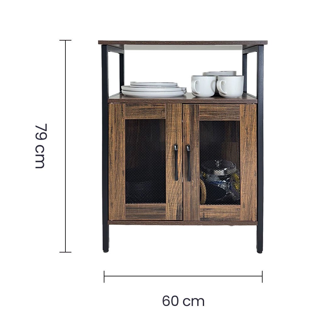 Fabricado en metal negro y melamina rústica de alta calidad, este mueble ofrece resistencia y durabilidad, aportando además un diseño moderno y elegante que se adapta a cualquier decoración. Sus estantes permiten organizar utensilios, electrodomésticos pequeños, recipientes o cualquier otro artículo de cocina que necesités tener a mano.