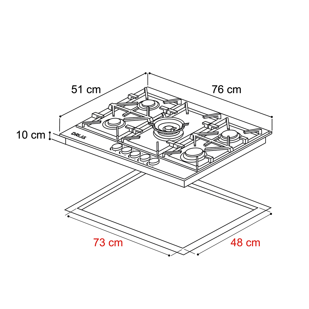 Equipada con cinco quemadores SABAF® de aluminio, reconocidos por su durabilidad y desempeño, entrega una potencia total de 11.6 kW, ideal para cocinar múltiples preparaciones de forma simultánea. Incorpora válvulas de seguridad y encendido eléctrico, brindando control preciso y tranquilidad durante el uso.