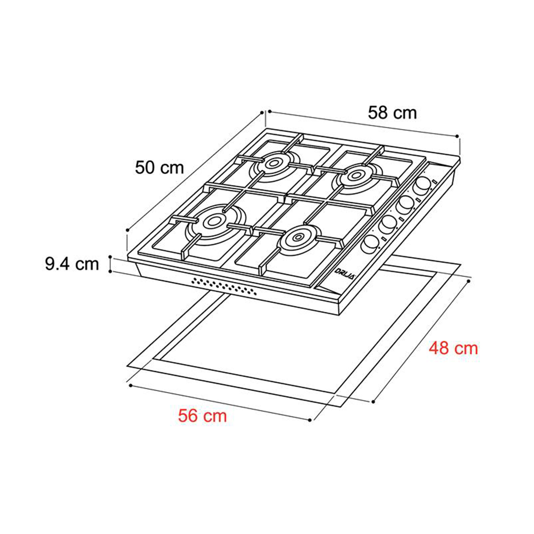 Equipada con cuatro quemadores de aluminio Drija y una potencia total de 7 kW, permite una cocción eficiente y controlada para distintas preparaciones. Incorpora válvulas de seguridad, encendido eléctrico y parrillas de hierro colado que brindan estabilidad y robustez al cocinar. Las perillas de lujo mejoran la experiencia de uso, mientras que la compatibilidad de voltaje 110V/240V aporta versatilidad en la instalación. Además, cuenta con garantía extendida de 10 años en los quemadores Drija, ofreciendo tranquilidad y durabilidad a largo plazo.