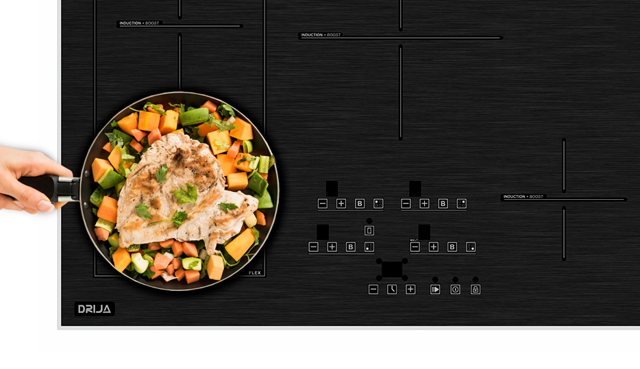 La estufa de inducción Drija MÚNICH 76 INDUKTION está diseñada para quienes buscan tecnología avanzada, seguridad y precisión absoluta en la cocina. Su superficie vitrocerámica antirayaduras de 76.5 cm, con bordes de aluminio, ofrece una estética moderna y una alta resistencia al uso diario.