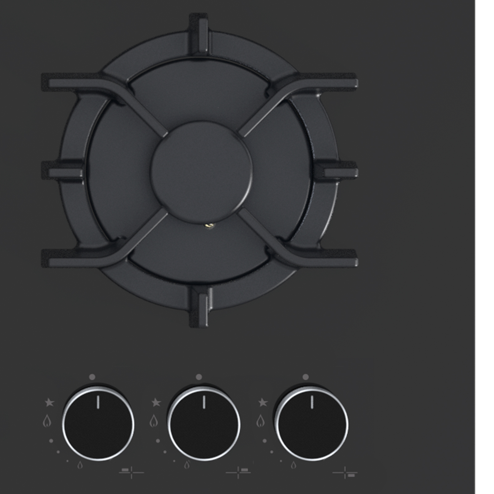 Quemadores gas: Triple corona 3.4 kW, semi-rápido 1.8 kW, auxiliar 1.0 kW