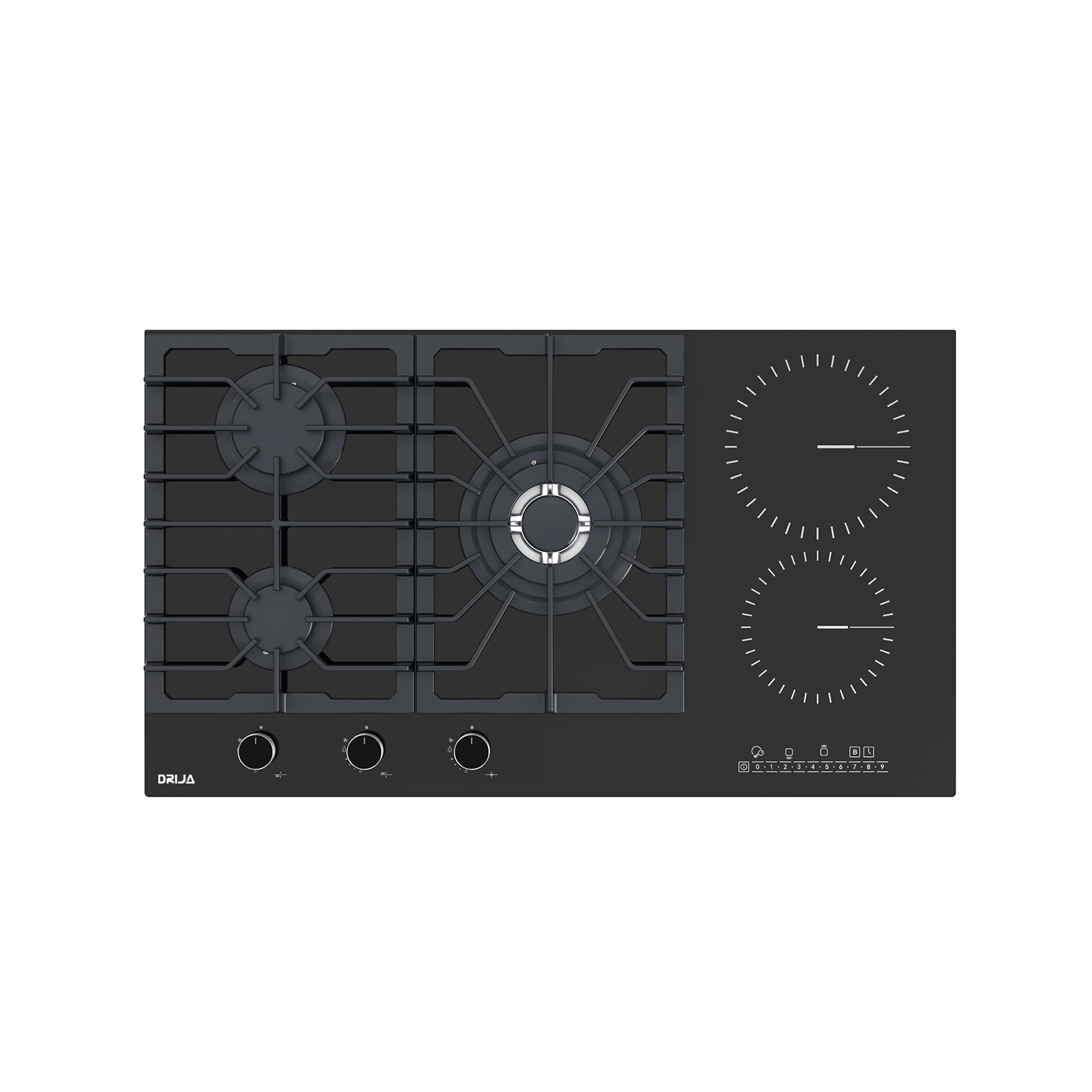 La estufa dual Drija Sicilia Touch 90 combina tecnología a gas y eléctrica en una sola cubierta diseñada para cocinas contemporáneas que exigen precisión, potencia y elegancia. Su superficie de vitrocerámica negra aporta un acabado sofisticado y fácil de limpiar, ideal para espacios modernos y de alto uso.