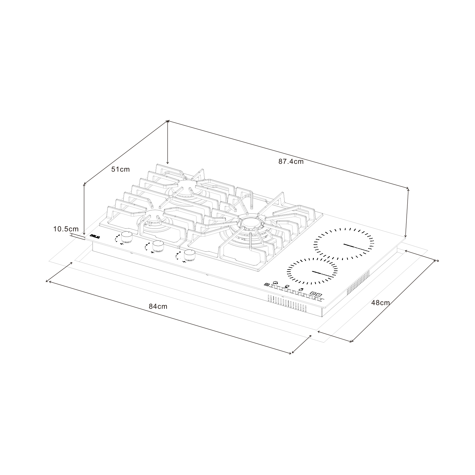 Integra quemadores a gas de alto desempeño, incluyendo un quemador triple corona de 3.4 kW, uno rápido de 2.4 kW y uno semi rápido de 1.8 kW, junto con dos superficies eléctricas EGO de 1.2 kW y 1.8 kW que amplían las posibilidades de cocción. El sistema de control táctil y las perillas de lujo permiten un manejo intuitivo y preciso, mientras que las válvulas de seguridad garantizan una operación confiable. Incluye plancha de hierro fundido para mayor versatilidad culinaria. Funciona a 220V con frecuencia de 60Hz y cuenta con 10 años de garantía en los quemadores Drija, ofreciendo respaldo y durabilidad a largo plazo.