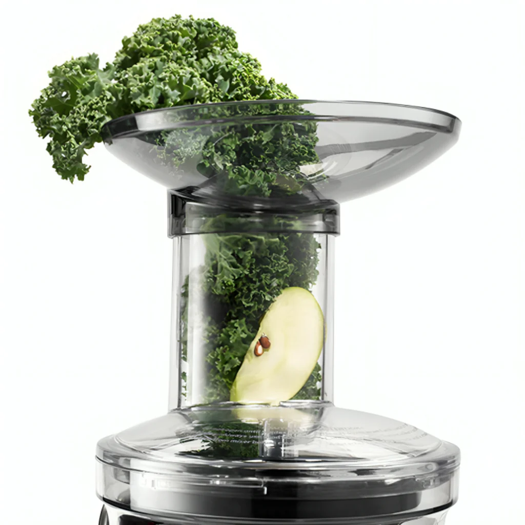 El extractor de jugos de 800W está diseñado para obtener el máximo sabor y nutrientes de frutas y verduras con un proceso eficiente y delicado. Incorpora tecnología patentada de KitchenAid que reduce la fricción durante la extracción, ayudando a conservar vitaminas y propiedades naturales.