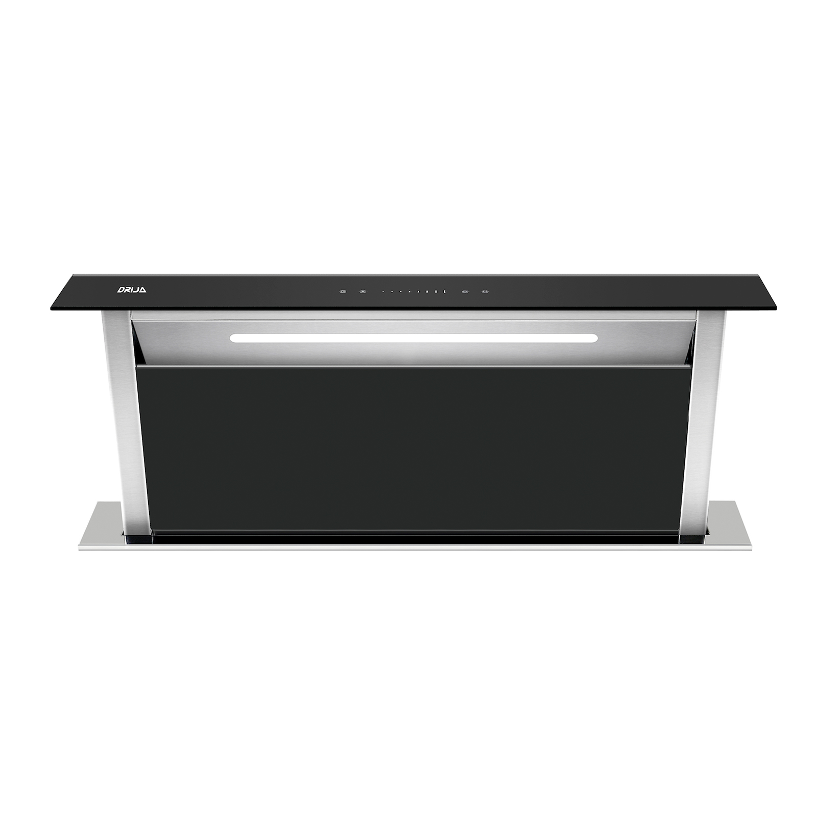 El extractor de grasa Drija Arco Isla 90 está pensado para cocinas de concepto abierto que buscan desempeño superior y una estética protagónica. Su combinación de acero inoxidable con panel y cubierta frontal en vidrio templado negro aporta un diseño elegante y contemporáneo, ideal para islas centrales.