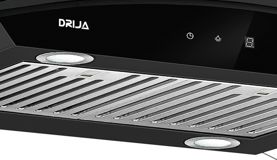 El extractor de grasa isla Drija Prisma Isla Touch 90 Black está pensado para cocinas contemporáneas que buscan un estilo sofisticado con alto nivel de funcionalidad. Su acabado en negro con vidrio templado y líneas limpias lo convierten en un elemento visual protagonista, ideal para islas centrales y espacios abiertos.