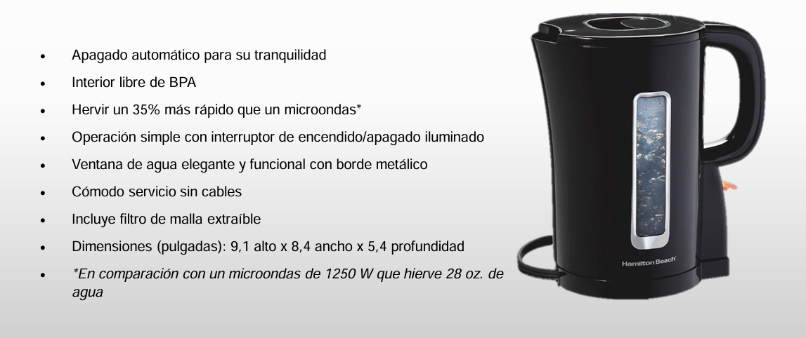 El Hervidor Eléctrico Hamilton Beach 41038G de 1.7 litros combina potencia, seguridad y diseño funcional: