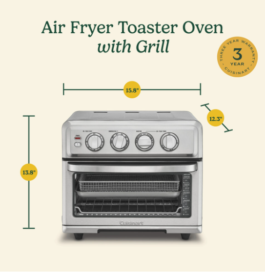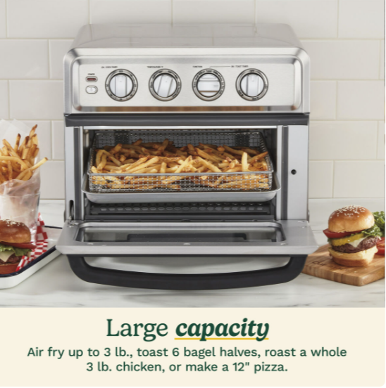 El horno tostador con freidora de aire Cuisinart TOA-70NAS es una solución completa para cocinar de forma rápida, saludable y versátil desde una sola unidad.