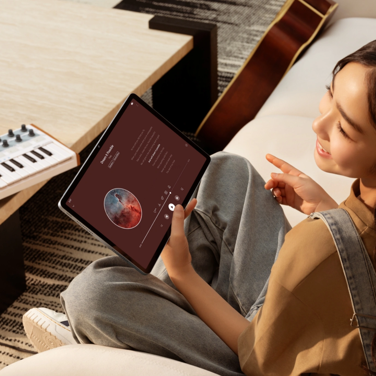 Diseñada con perfil delgado (6.9 mm) y peso ligero (475 g), es fácil de transportar y cómoda para uso prolongado.