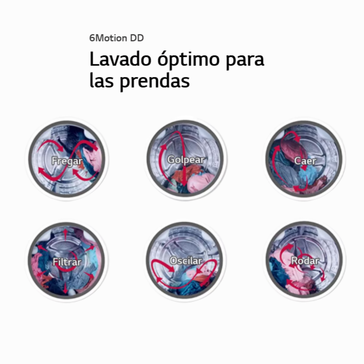 Utiliza seis movimientos diferentes del tambor para adaptarse al tipo de tejido, logrando un lavado más profundo mientras cuida las telas.