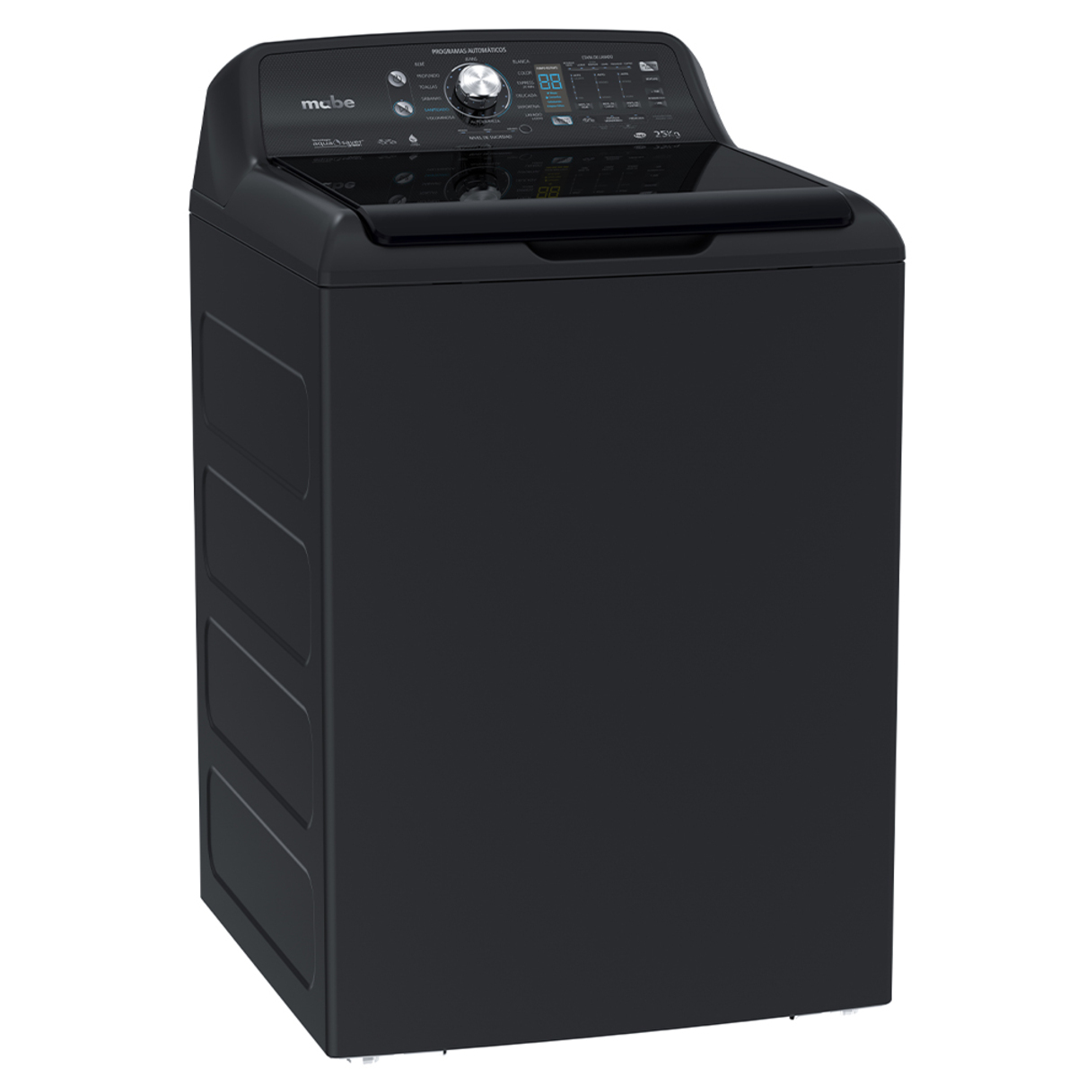 El panel mecánico con 5 perillas facilita la selección de programas y está diseñado para durar, incluso en condiciones de uso intensivo. Su tapa de vidrio templado con cierre suave le da ese toque premium que habla de calidad.