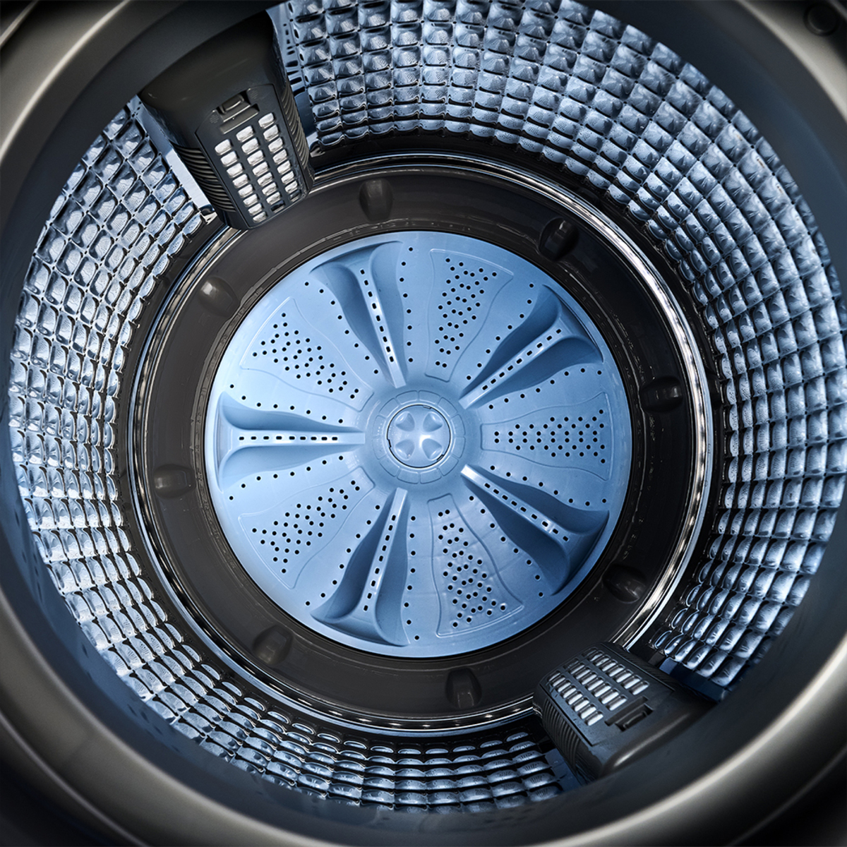 Acabado moderno en Diamond Gray y diseño funcional convergen en una lavadora que entiende tus necesidades reales.