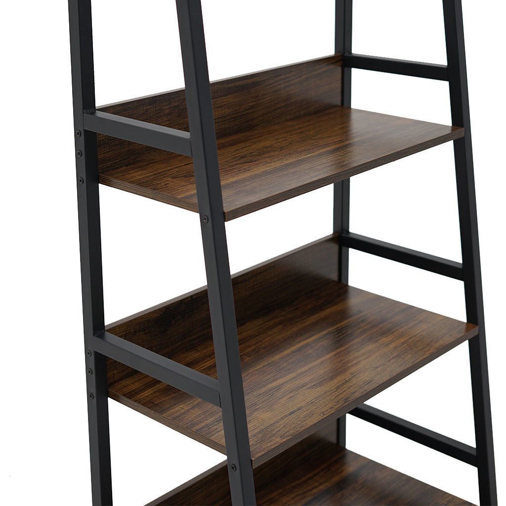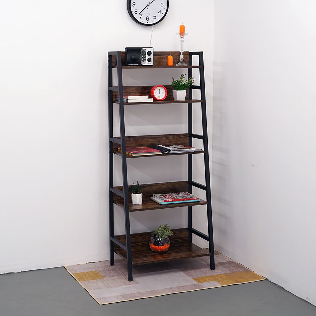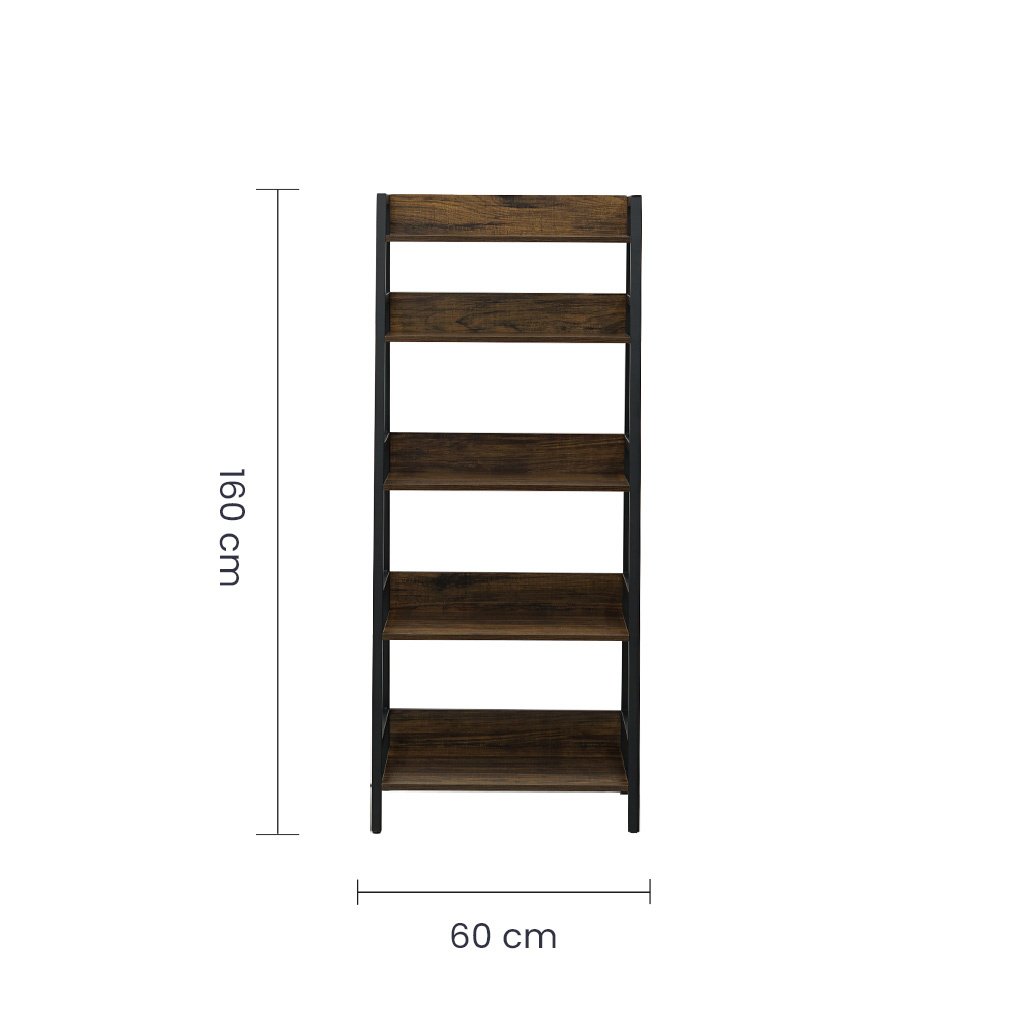 Su diseño en color roble oscuro con estructura metálica aporta elegancia y confort, mientras que sus cinco niveles permiten mantener tus pertenencias siempre ordenadas. Es ideal para almacenar libros, fotos familiares, plantas o figuras decorativas.