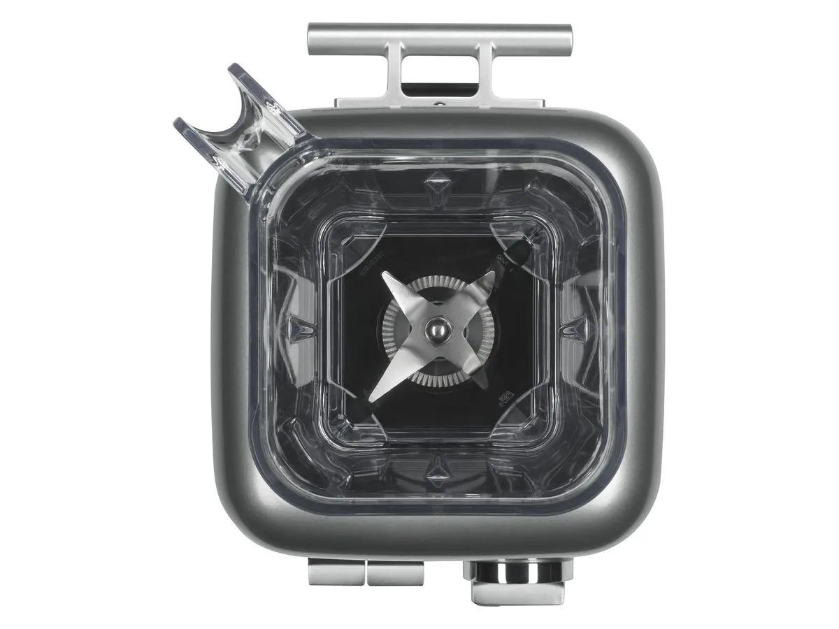 La jarra cuadrada de policarbonato libre de BPA tiene una capacidad de 1.75 L (60 oz) y está diseñada para soportar impacto, cambios de temperatura y uso continuo. Sus cuchillas asimétricas de acero inoxidable optimizan el flujo de ingredientes para obtener texturas suaves y homogéneas.
