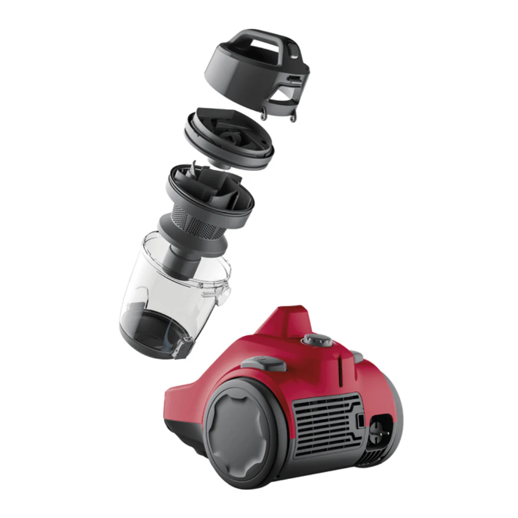 Su potencia de 1800 watts ofrece gran capacidad de succión con sistema de velocidad ajustable mediante botón regulador, permitiendo adaptarse a distintos tipos de superficie. No utiliza bolsa para polvo, lo que reduce costos y facilita el mantenimiento.