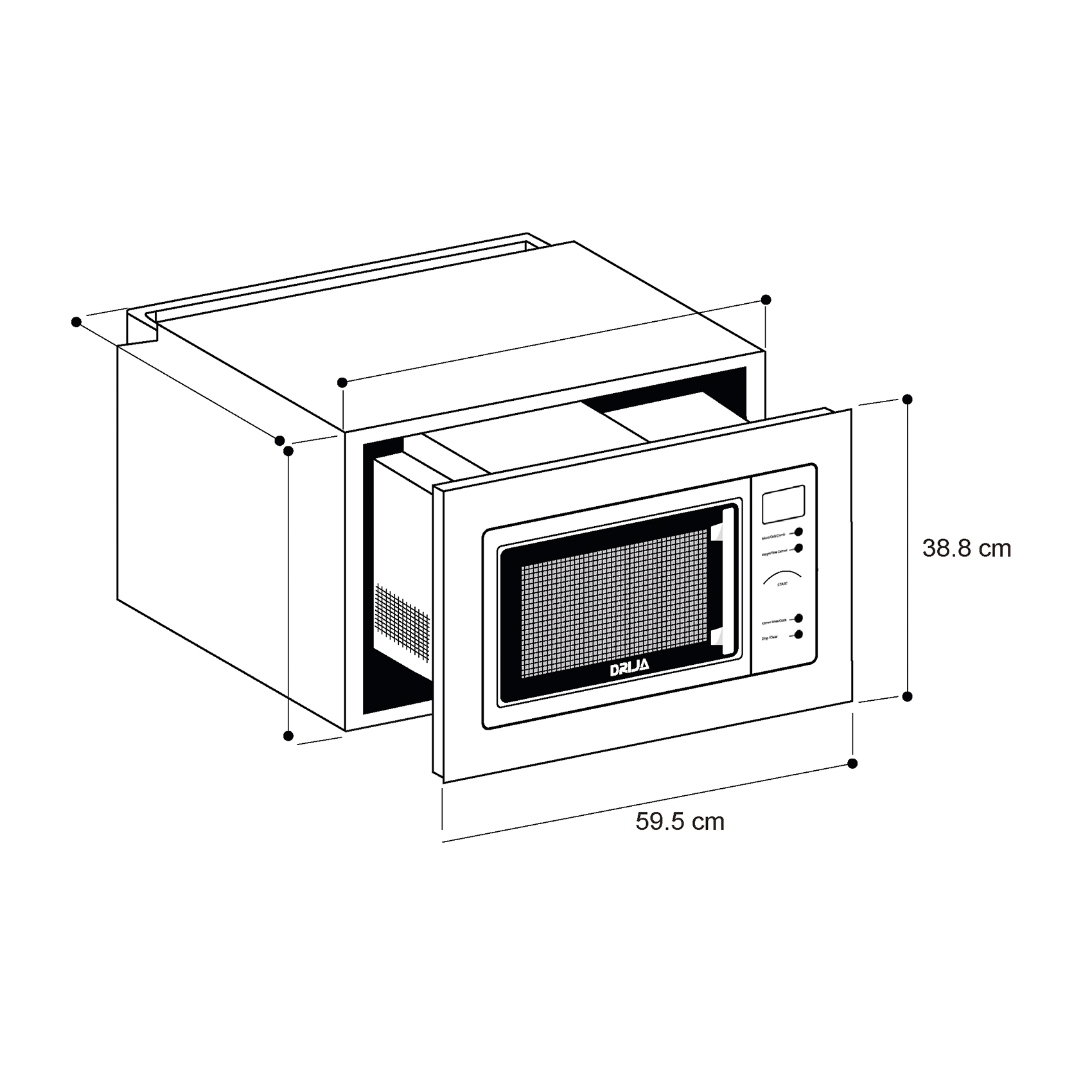 El microondas empotrable Drija FLORENCIA 25L BLACK ofrece una combinación ideal de diseño elegante y funcionalidad práctica para cocinas modernas. Su trim incorporado en vidrio espejo negro y vidrio templado permiten una integración limpia y sofisticada en muebles de 59.5 cm.