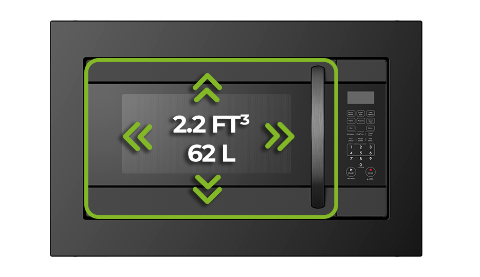 Con capacidad de 62 litros y potencia de 1350 W, ofrece versatilidad para preparaciones grandes. Incluye plato giratorio y kit de trim para una instalación empotrable limpia. Cuenta con certificación UL, garantizando estándares internacionales de seguridad y calidad.