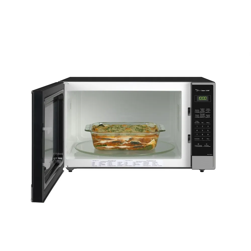 Su acabado en acero inoxidable le da un aspecto elegante y profesional, además de facilitar la limpieza y garantizar mayor resistencia al uso diario. Incluye funciones avanzadas de calentado rápido, descongelado uniforme y cocción automática, optimizando tiempo y energía.