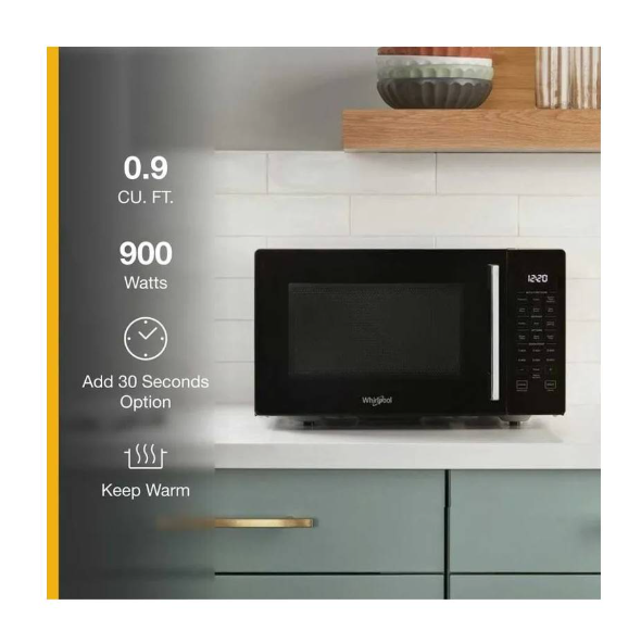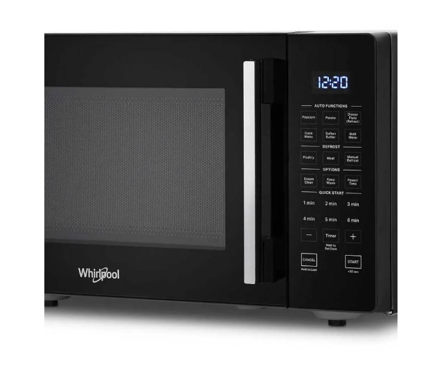 El Whirlpool LWMC30309LB es un microondas de 0.9 pies³ ideal para cocinas pequeñas o apartamentos. Su panel digital facilita elegir tiempos y potencias, mientras los menús automáticos simplifican tareas diarias como recalentar o cocinar porciones rápidas. El descongelado por tiempo o por peso mejora los resultados y el plato giratorio de vidrio reparte el calor de forma uniforme. Con iluminación interior y diseño negro moderno, es una solución confiable y fácil de usar.