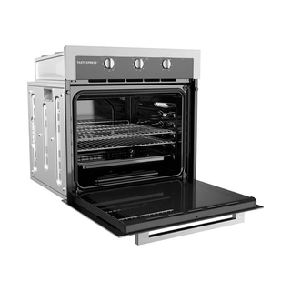 El horno empotrable de 24 pulgadas combina lo mejor de la cocción a gas y eléctrica en un diseño moderno y elegante. Su acabado silver con detalles en acero inoxidable aporta sofisticación a cualquier cocina contemporánea, especialmente en espacios compactos o departamentos.