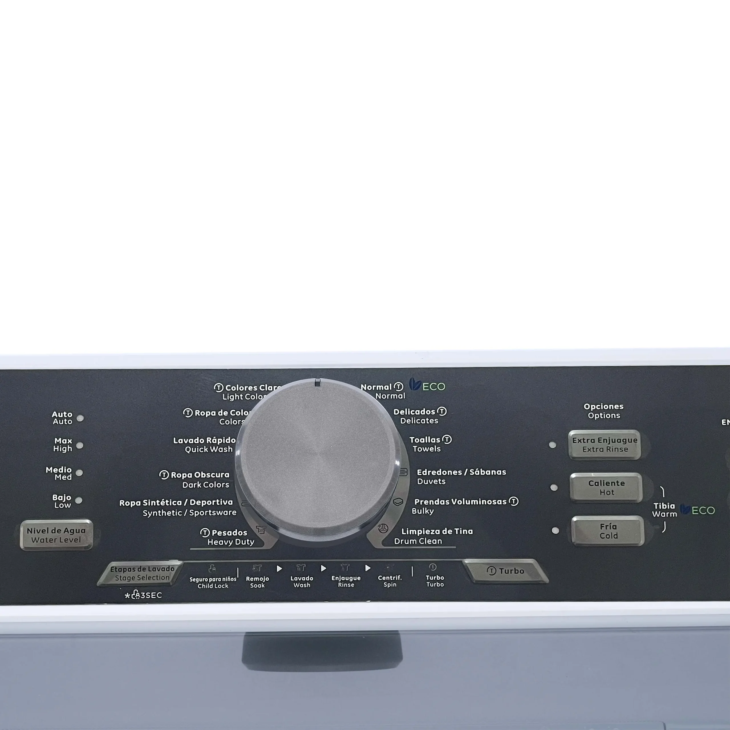 Incorpora función Auto Clean para el cuidado del tambor, modo ECO para optimizar consumo energético y un panel central con display LED que permite monitorear fácilmente el progreso del ciclo. Su diseño en color blanco es sobrio y funcional, adaptable a cualquier área de lavado.
