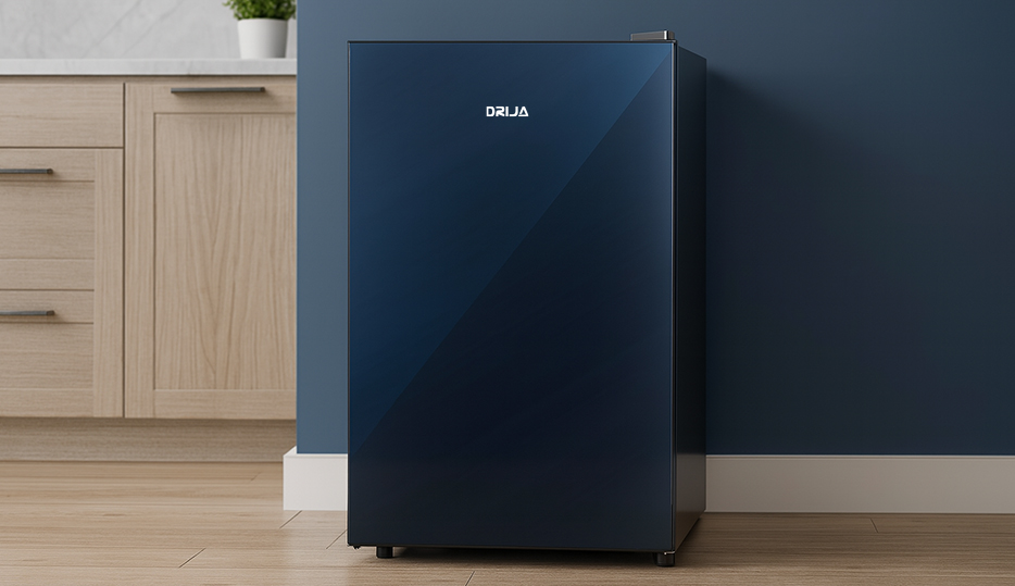 La nevera ejecutiva Drija MIRROR-3 ofrece una solución compacta y eficiente con un acabado azul espejo que aporta un toque moderno y distintivo a oficinas, habitaciones, apartamentos o áreas de apoyo. Su capacidad de 3.2 pies cúbicos permite un uso práctico del espacio sin sacrificar desempeño.