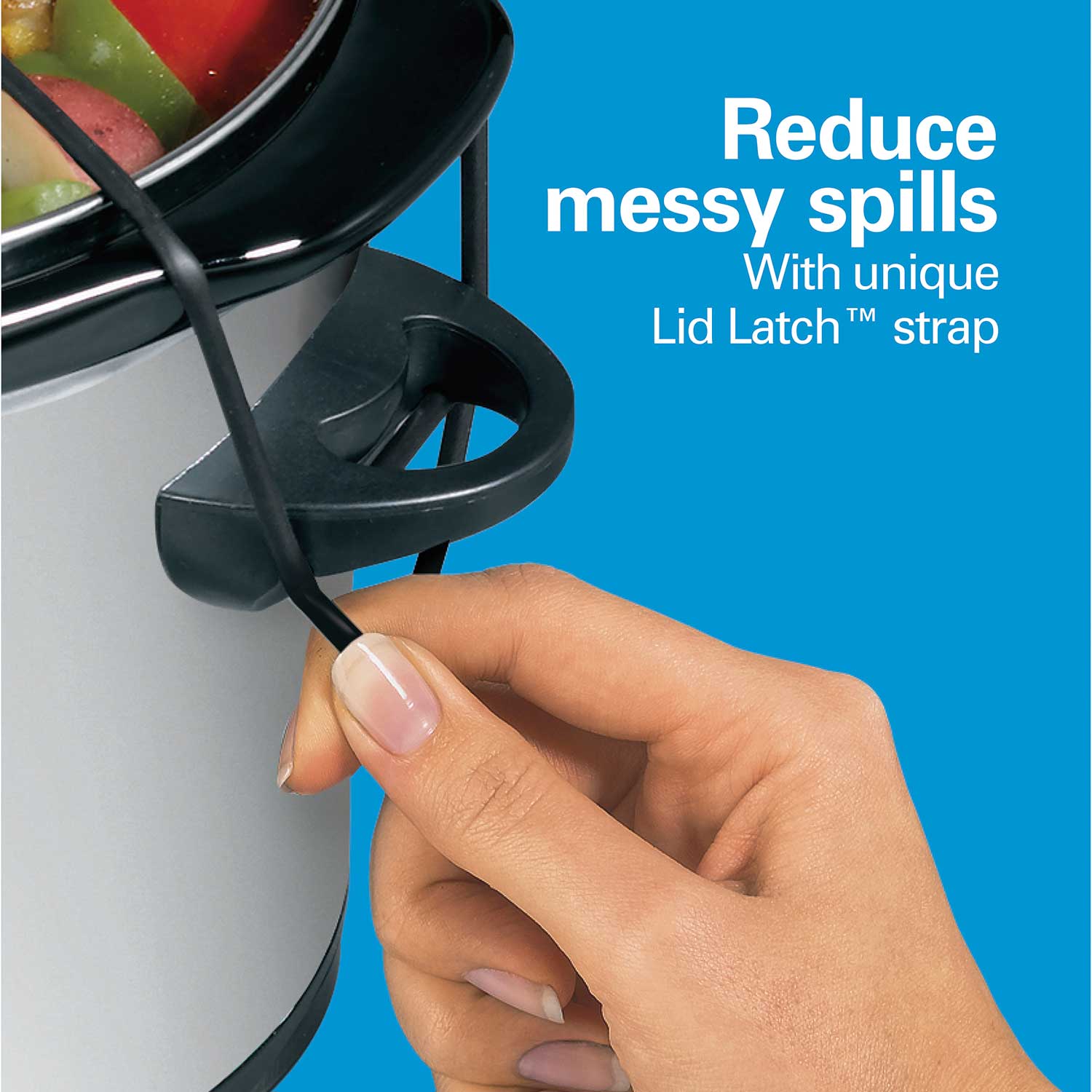 Incluye sistema Lid Latch que fija la tapa, facilitando el transporte sin derrames. Ideal para reuniones o llevar comida preparada.