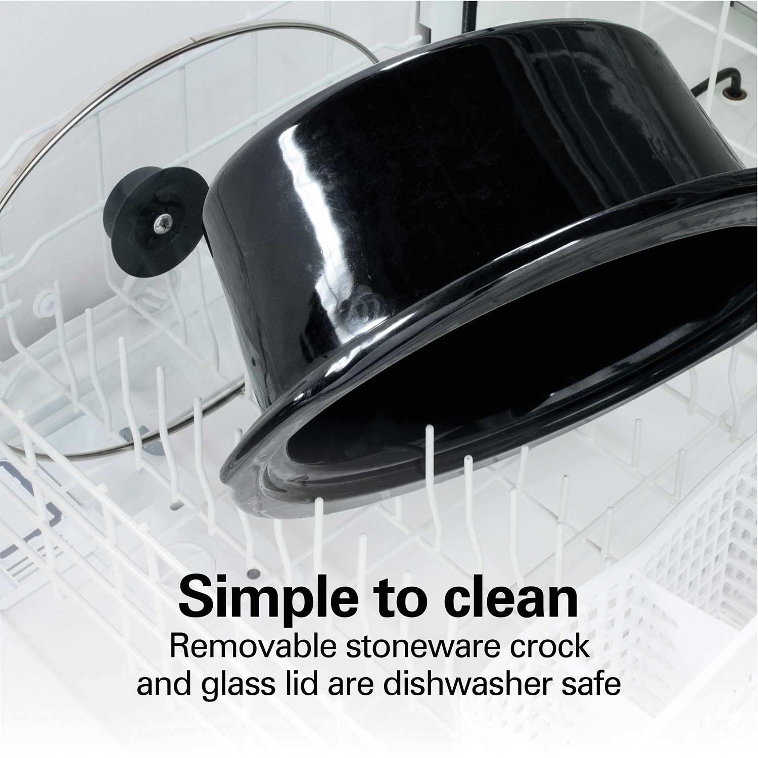 Olla interna de cerámica removible y tapa de vidrio aptas para lavavajillas, facilitando el mantenimiento.