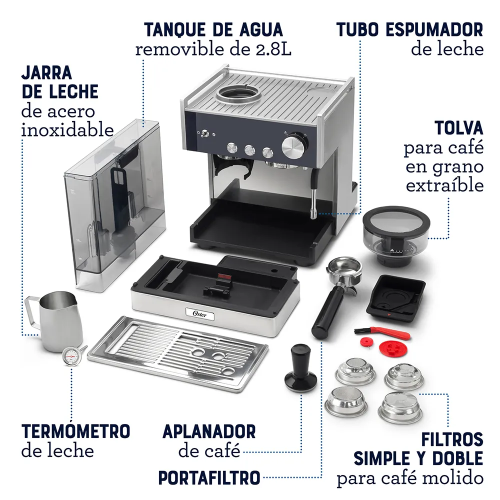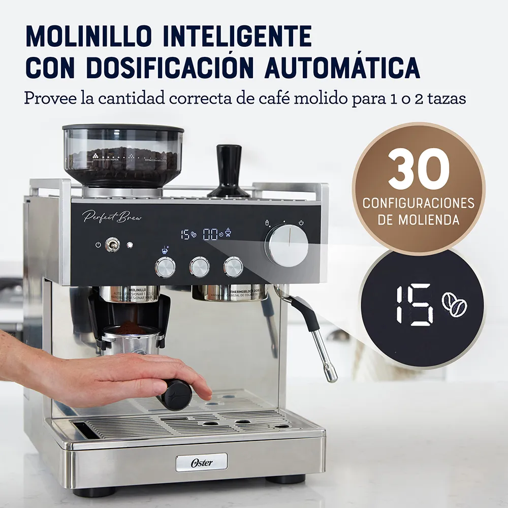 Disfrutá de un espresso profesional en casa con la Cafetera Oster® Perfect Brew BVSTEM7400. Diseñada para verdaderos amantes del café, combina estilo, potencia y tecnología para ofrecer una experiencia gourmet sin salir de casa.